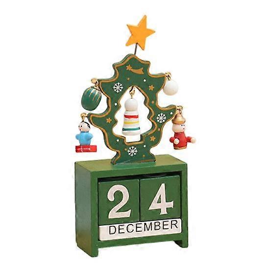 Christmas Wooden Desktop Calendar Santa Snowman Reindeer Tree Perpetual Calendar Wood Display Block Ornament for Home Office Decoration