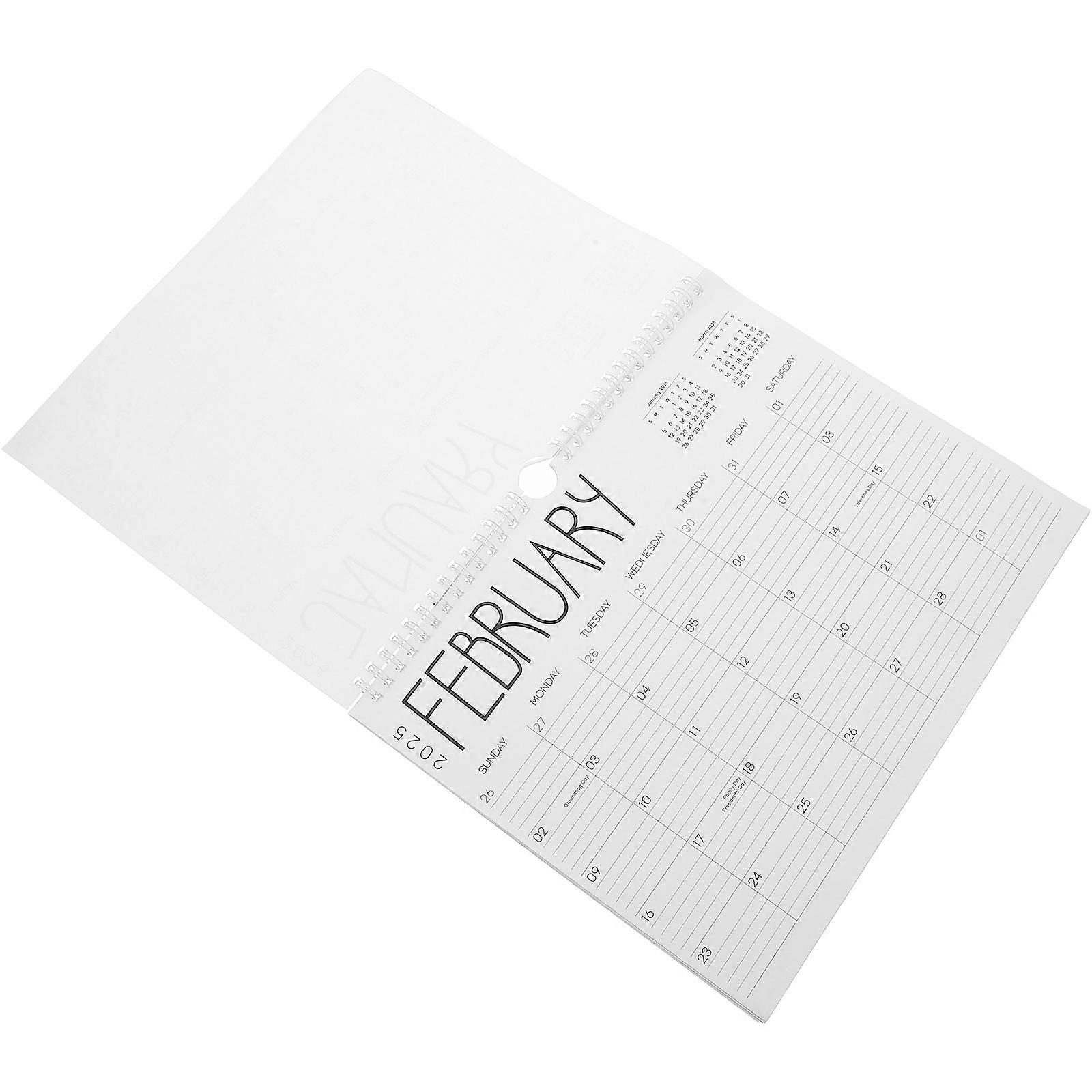 The 2025 wall calendar is an essential tool for keeping your life organized. for home or office use, it features a twin-wire binding and a hanging hook for easy display. The ruled blocks provide ample space for jotting down appointments, birthdays, and important events. Whether you're planning family activities or managing work schedules, this calendar ensures you stay on top of your commitments. Features -Color:White -Material:Paper -Size:28.00X22.00X0.05cm/11.00X8.65X0.02in -Material: made from paper, ensuring durability and a feel for everyday use throughout the year -Comprehensive information: provides complete date information for the entire year of 2025, including international holidays, aiding in efficient planning -Aesthetic design: features coil design that not only makes flipping pages easy but also adds a decorative touch to any wall -Printing: utilizes printing techniques to ensure clear, easytoread text and images, enhancing user experience -Versatile usage: ideal for various settings such as homes, offices, and schools, making it a versatile tool for organizing schedules Package list: 1 2025 wall calendar