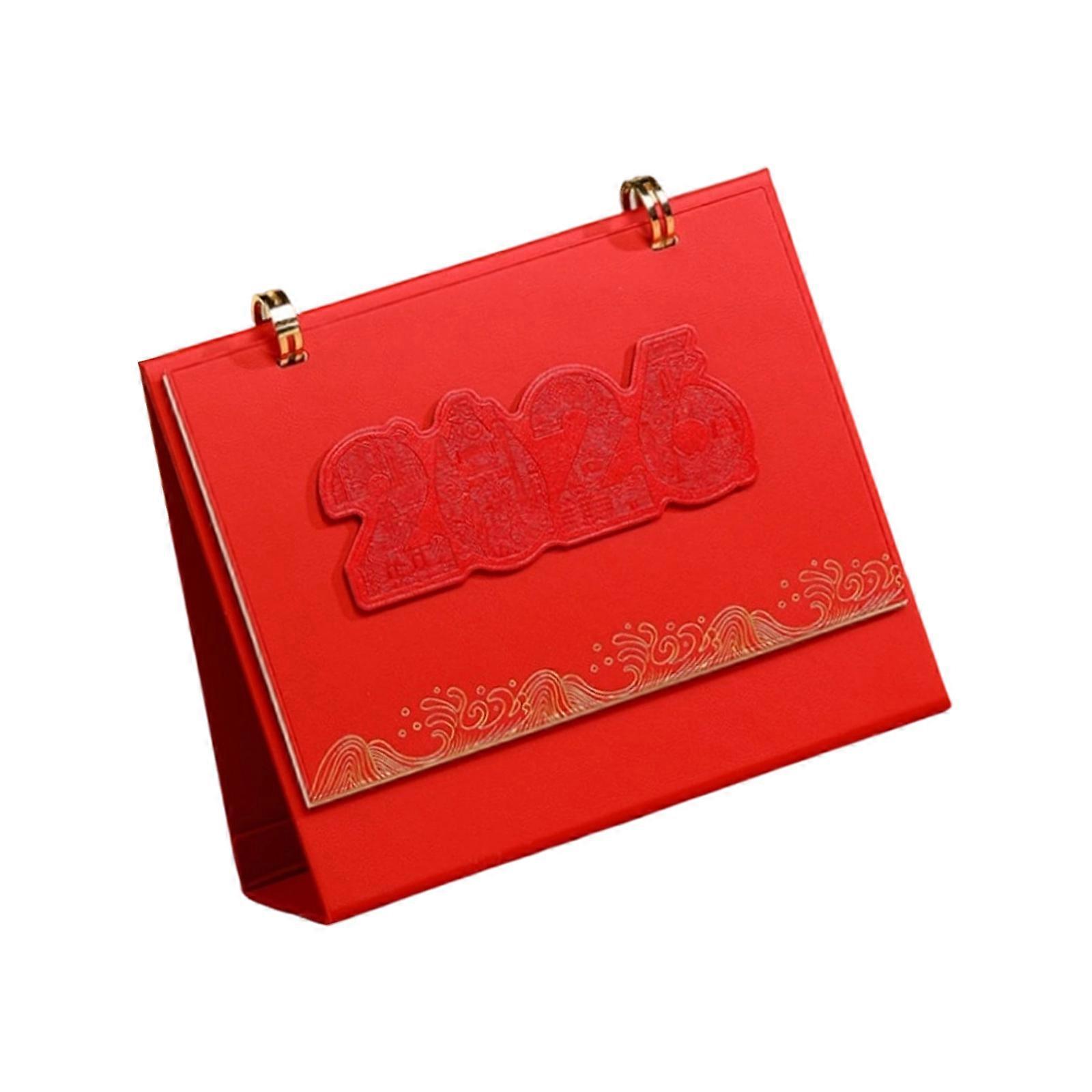 2026 Desktop Calendar Genuine PU Leather Surfaces Thickened Base Suitable for Corporate Gifting Easy Organization Red