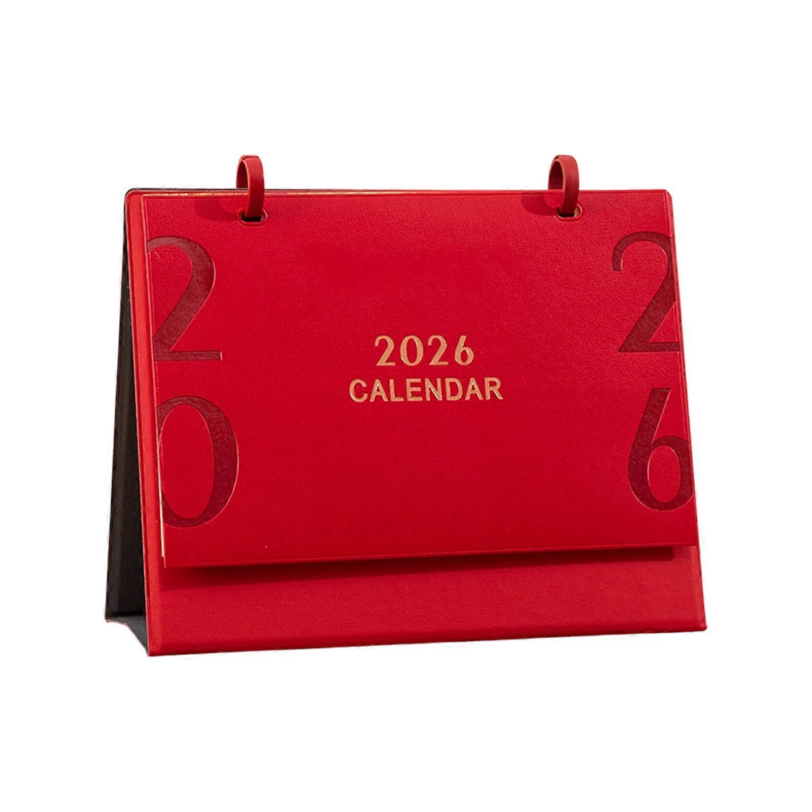 2026 Desktop Calendar Monthly Planner with Leather Stand 12 Month from Jan to Dec For Daily Scheduling 220x175mm Red