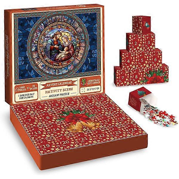Nativity Advent Calendar 2024 Christmas Puzzle 1008 Pieces for Adults, Stained Glass Jesus Puzzle Christmas Countdown Calendar