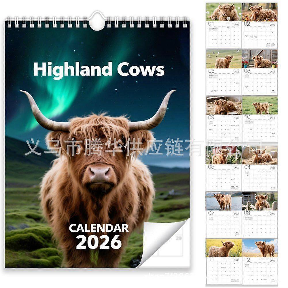 Highland Cow Calendar 2026 Rustic Farmhouse Wall Art & Monthly Planner, 12 Month Wall Calendar, Scottish Highland Cow 2026 Wall Calendar for Animal L