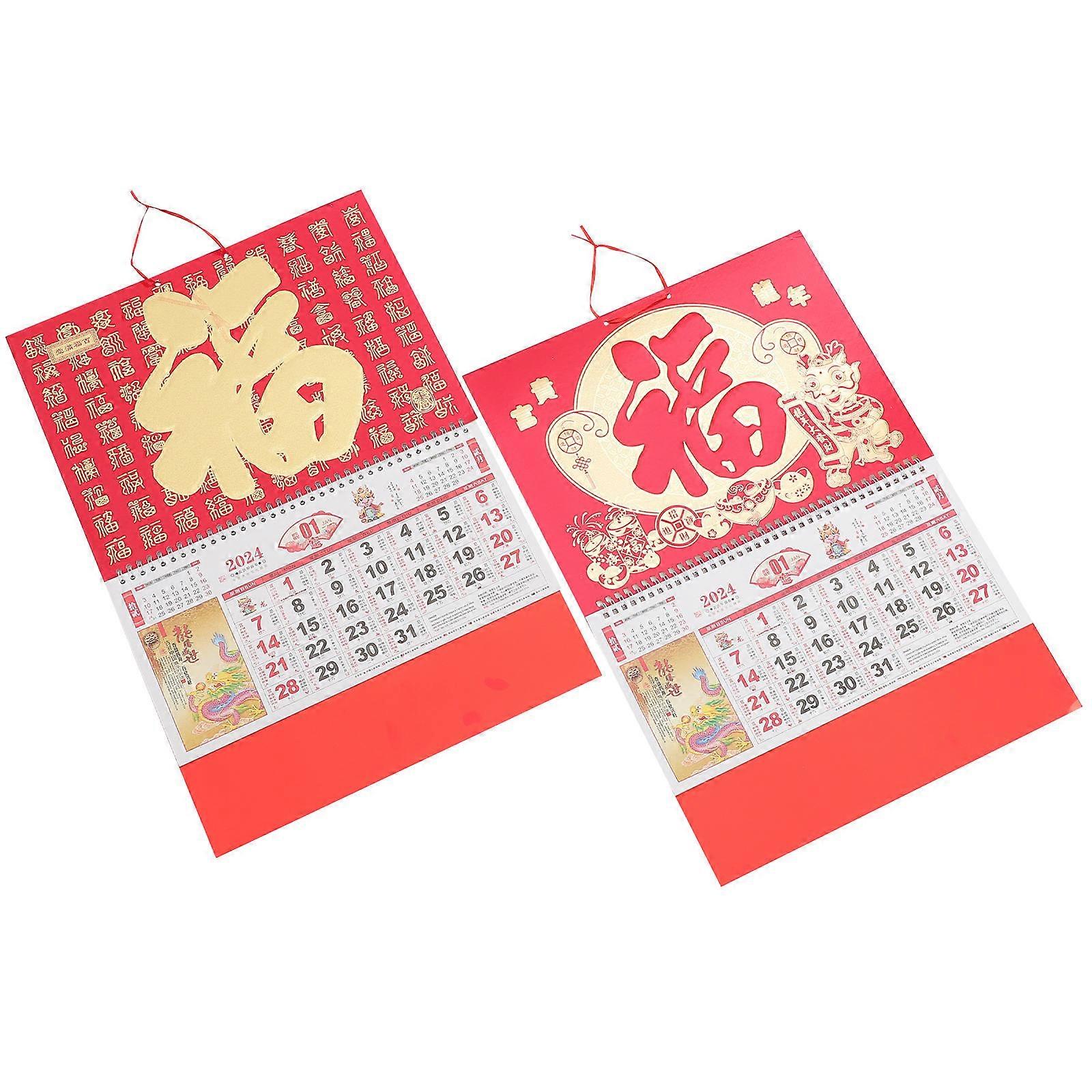 Hanging Calendar 2024 4Pcs Chinese Traditional Style Ideal For Friends Family Gift Red Color Rectangular Artwork