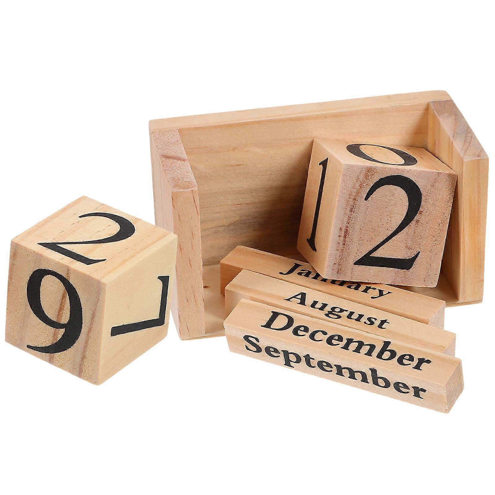 Household Perpetual Calendar Elegant Wood Cubic Supply For Adults Daily Use Standing Calendar 3.8×2.2×1.8in 1Set
