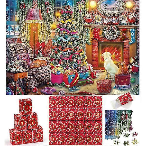 Advent Calendar 2023 Christmas Puzzle - Christmas By The Fireplace Holiday Puzzle For Adults Kids