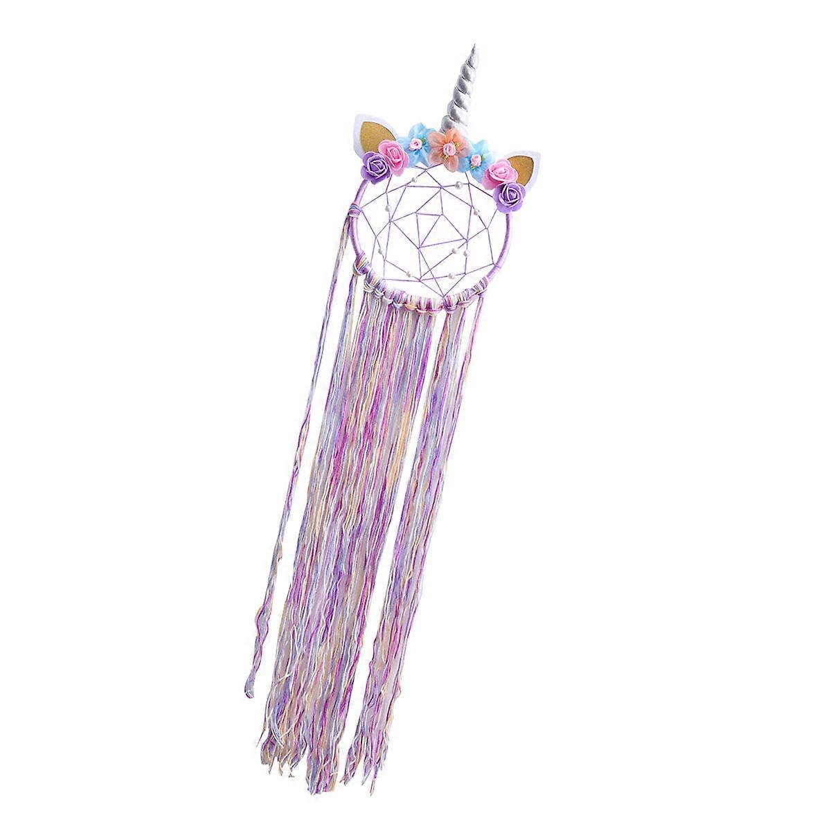 Catcher Wall Decoration Purple Hanging Pendant with Pearl, Fake Flower & Yarn Bedroom Ornament for Children's Room