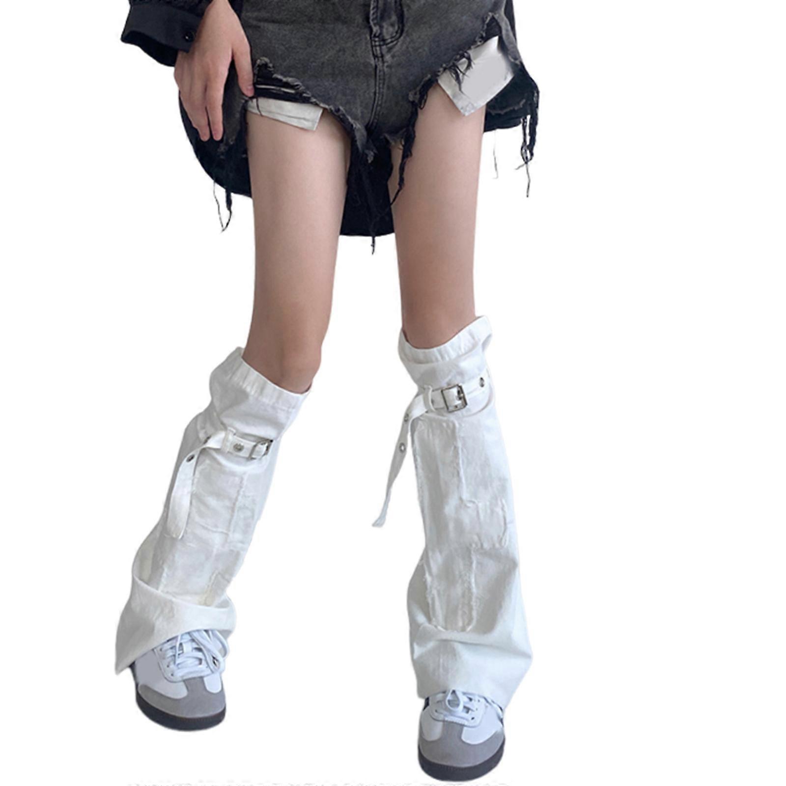 Womens Lolitas Flared Jeans Long Socks Crosses Leg Warmers Harajuku Punk Denims Boot Socks Y2K Fashion Ankle Heap Socks White