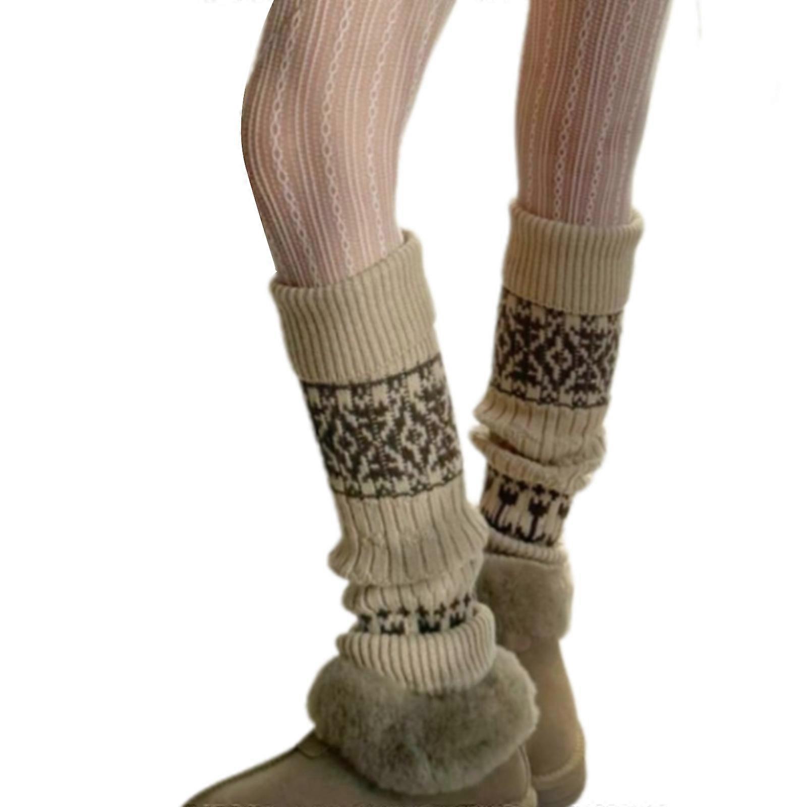 Womens Lolitas Knit Long Socks Sweet Christmas Leg Warmers Harajuku Leg Sleeve Boot Socks Winter Warm Ankle Heap Socks Oatmeal color