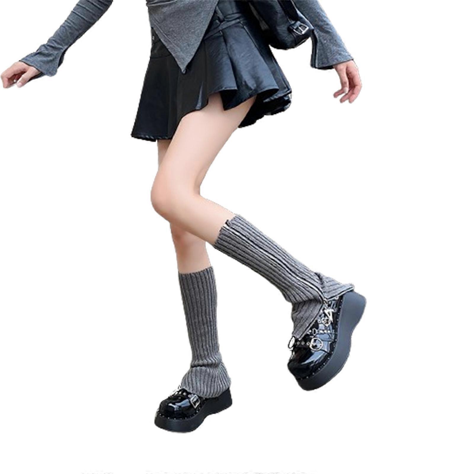 Womens Lolitas Knitted Long Socks Knee High Leg Warmers Fashion Harajuku Cute Boot Socks Winter Ankle Heap Socks Gray