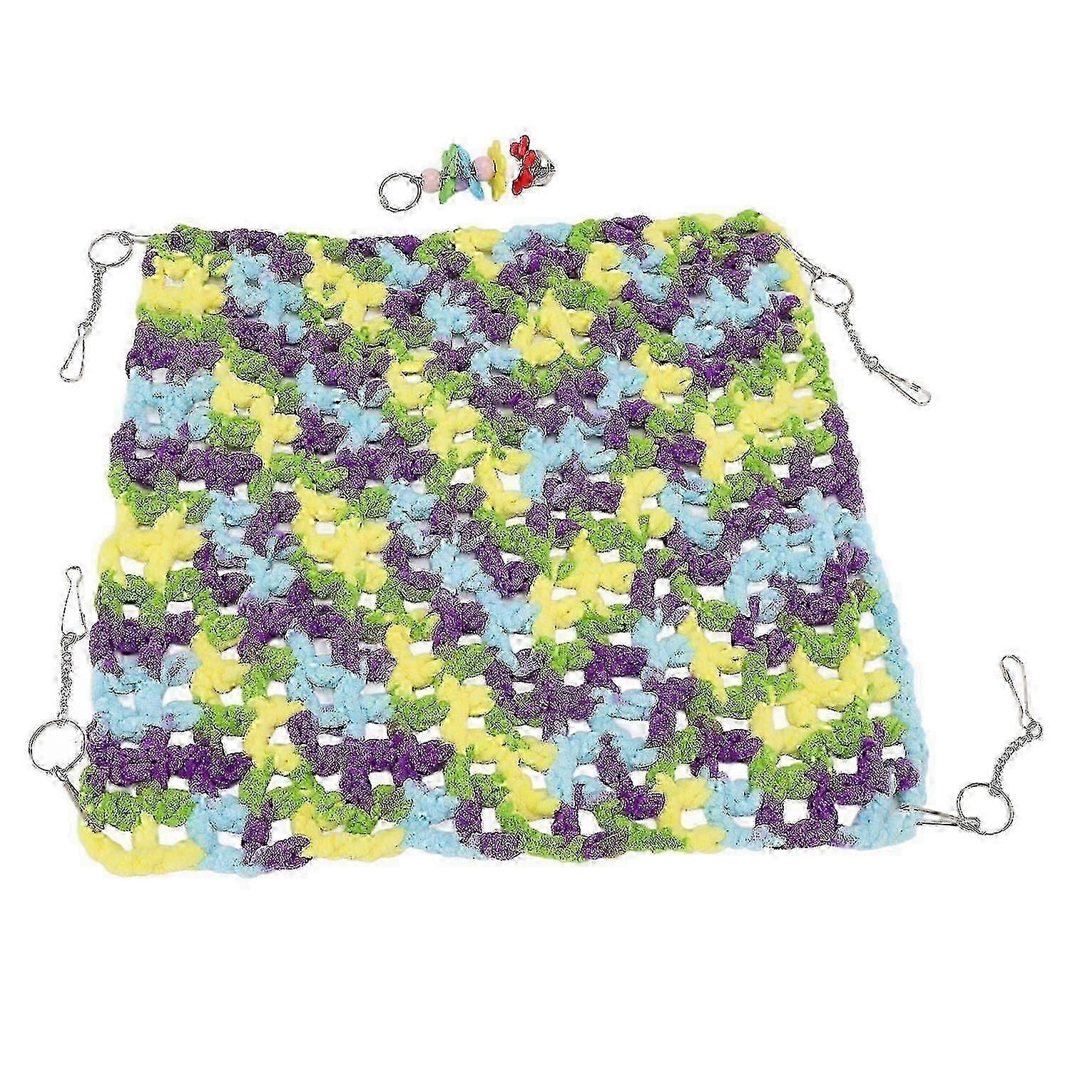 Feature: 1. PREMIUM MATERIAL: Pet weave hammock is made of warm, breathable and wear resistant woolen material, safe and non toxic, soft and breathable, providing a great place for pets to rest and play. 2. EASY TO INSTALL: Small pet hammock for pets to sleep or play inside, comfortable and sturdy for all seasons, easy to fix quickly inside the cage with quick link attachment. 3. MULTIFUNCTION: Pet cage hanging bed has hanging method of free collocation, different visual effects and experience effects, so that the love of pet entertainment without limits. 4. COMFORTABLE IN HAND: Pet hammock swing elastic colorful, soft and delicate, comfortable to the touch, no hair loss, no pilling, no fading, which can be the best chioce for your lovely pets. 5. EASY TO CLEAN: Pet cage hanging bed is easy to clean and easy to dry, but it is not machine washable. Please remove the hanging chain before washing. Specification: Item Type: Hammock Material: Woolen Thread Use: Small Pet Hamster, Honey Fly Woven Hammock Color Classification: Green, Yellow, Blue, Purple. Package List: 1 x Hammock1 x Flower String Note: 1. Hand woven elastic products, there is 02cm error.2. Mixed colors, flower strings in random colors.3. Hanging against the cage wall (climbing net), triangle hanging (tunnel net), flat hanging in the cage, flat in the nest (nest mat), boat nest hanging (adding fun), dumpling type hanging (hidden hiding place)