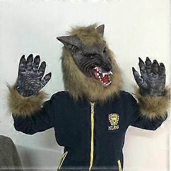 לטקס חיה זאב ראש שיער ציפורניים כפפות זאב שמלה מפוארת ליל כל הקדושים