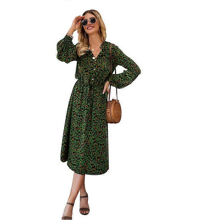 Lady Fashion v-neck Over-Knee Long Sleeve Leopard Print Dress