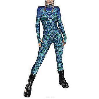 Lady Halloween Party Jumpsuit Cosplay Costume Printed Bodysuit