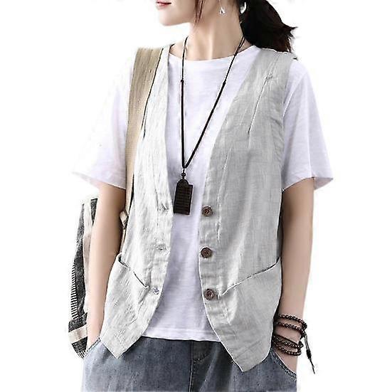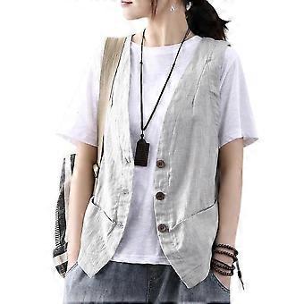 Lady Coat V Neck Single-breasted Sleeveless Solid Color Cardigan Button Closure Retro Wear Waistcoat Daily Casual Vest