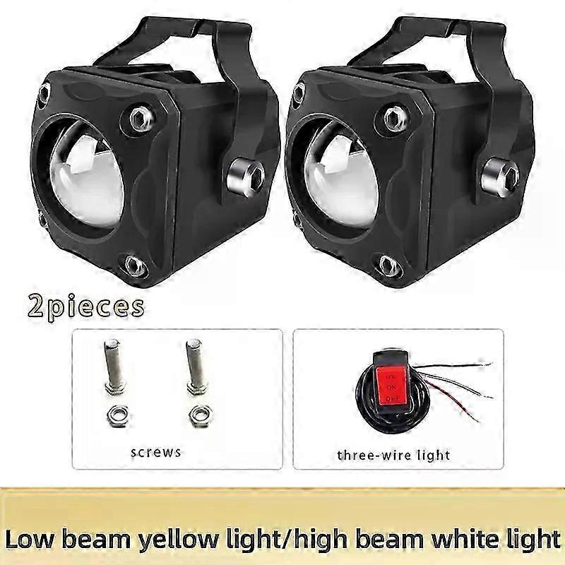 Night knight Mini Motorcycle Auxiliary LED Headlights Dual Color Spotlights Motorbike Projector Fog Light Front Driving Lamps