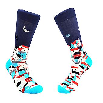 Summer Night and Crescent Moon Over A Seaside Town Socks from the Sock Panda