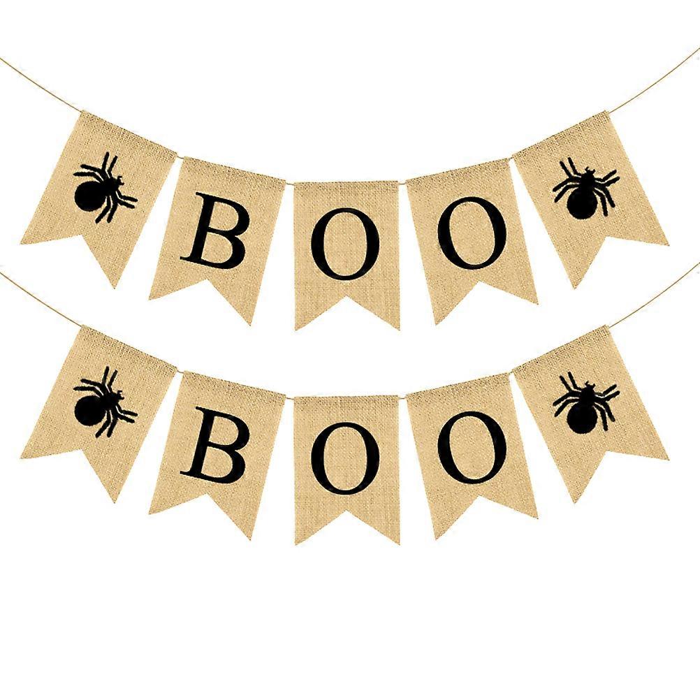 Halloween Party Supplies Linen Boo Spider Design Banner for Decoration 2Pcs