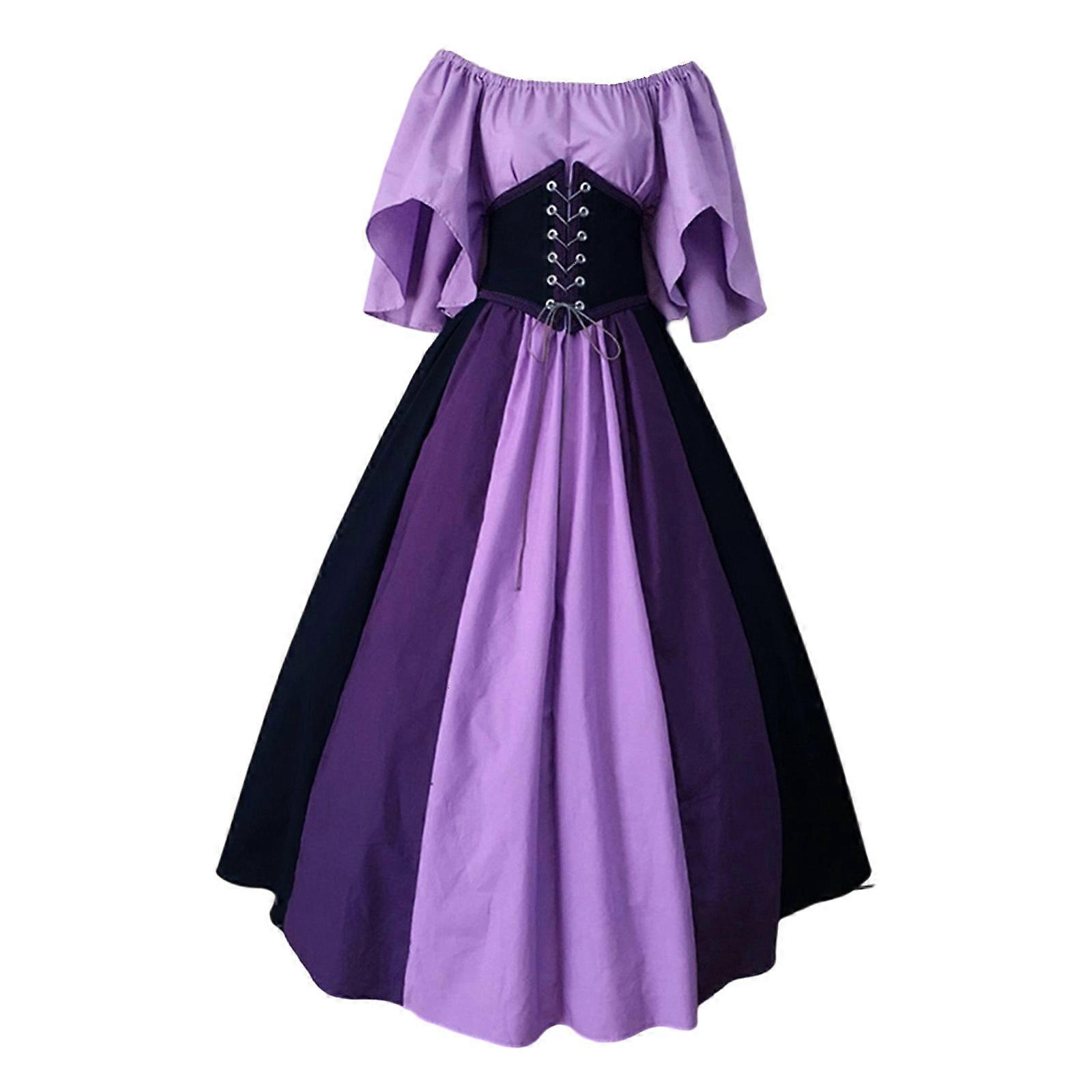 Halloween Medieval Renaissances Costume Women Renaissances Corset Dress Medieval Chemise for Cosplay Dressing Up Party Purple S