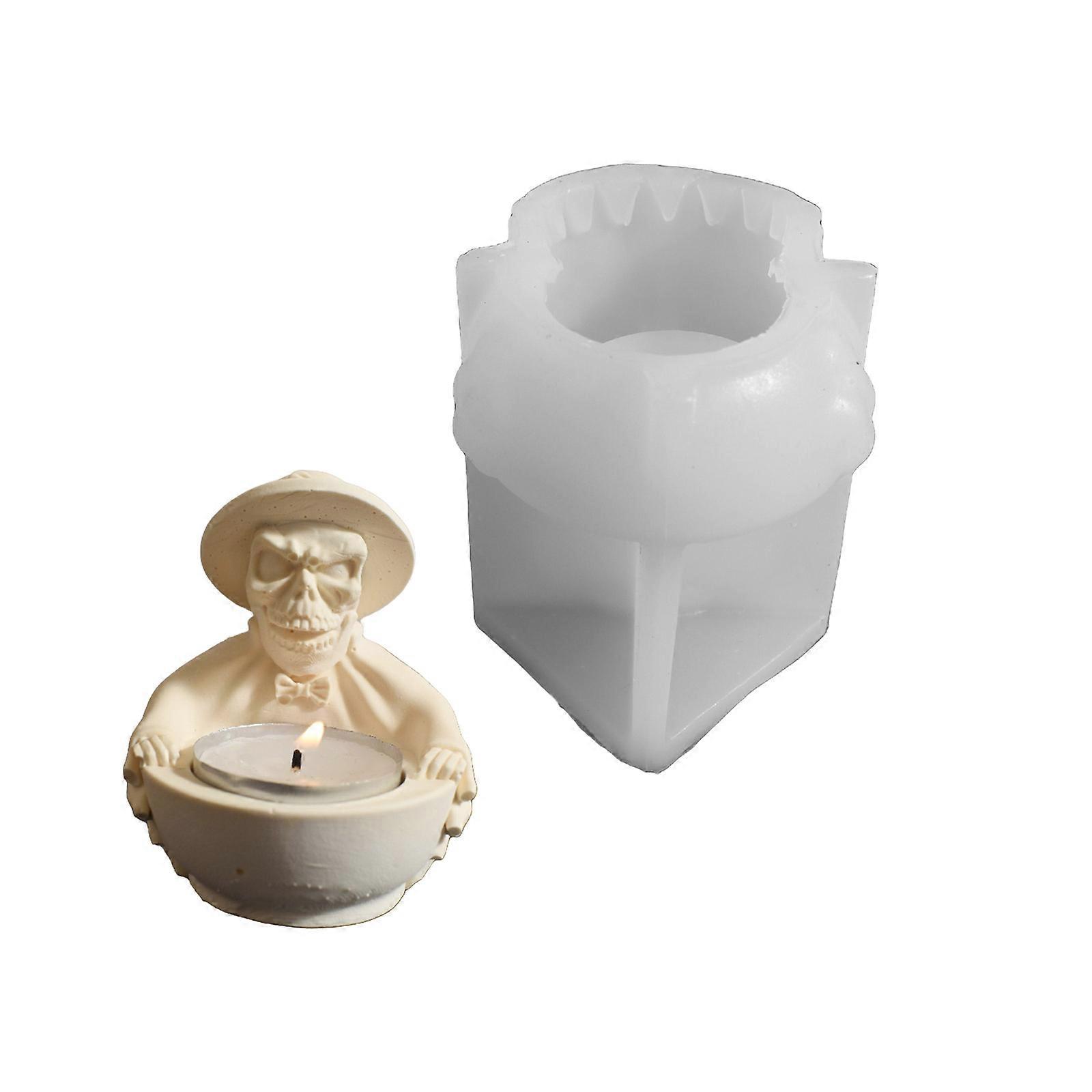 Halloween Crafting Silicone Mold Detailed Skull Candle Holder Mold Silicone Texture for Gentleman Skull Resin Crafts Multicolor