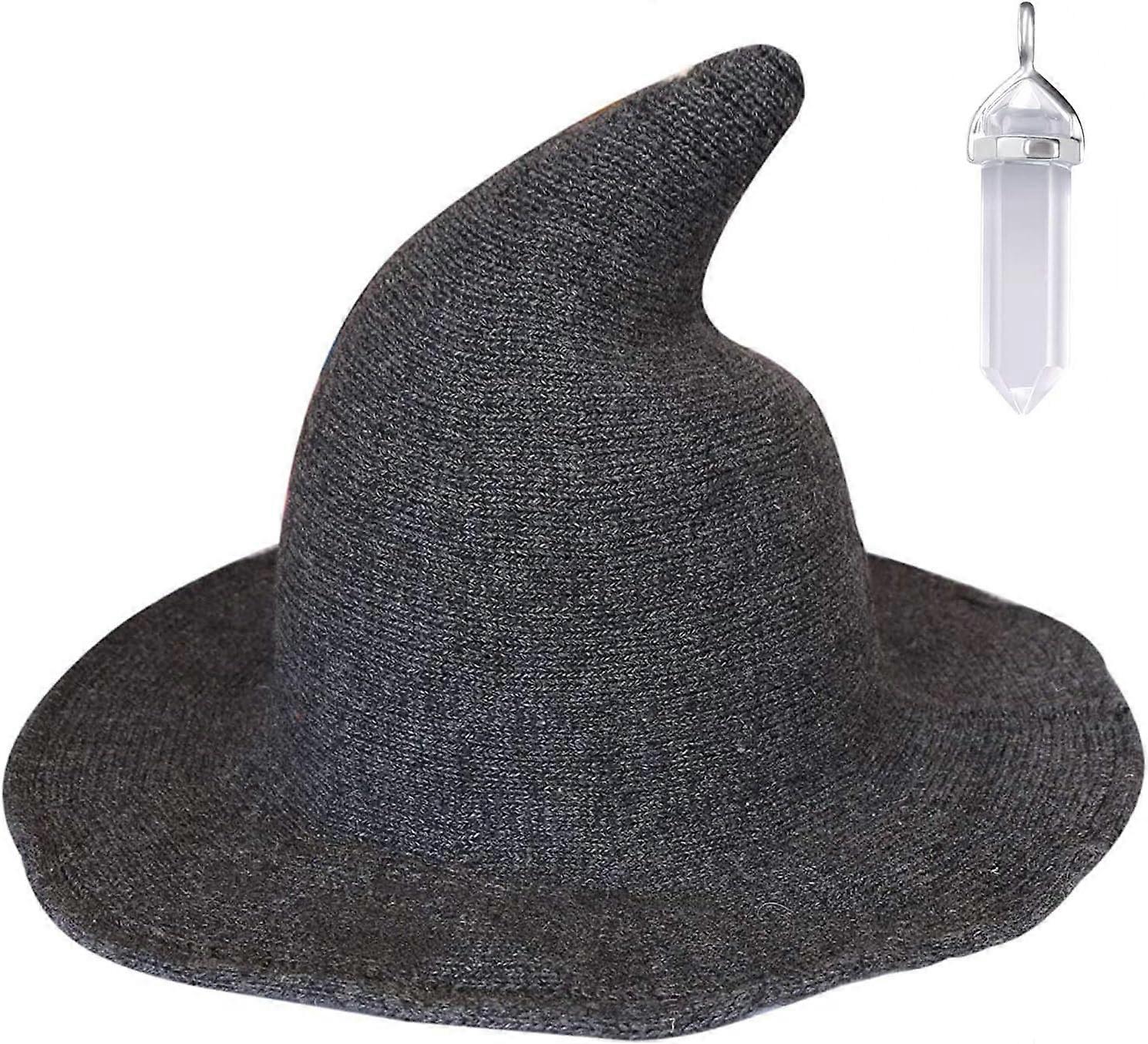 Halloween Witch Hat in Wool Wide Side Foldable Pointed Hat Chic Fashion Fancy Dress Party Carnival All Saints' Day Gray