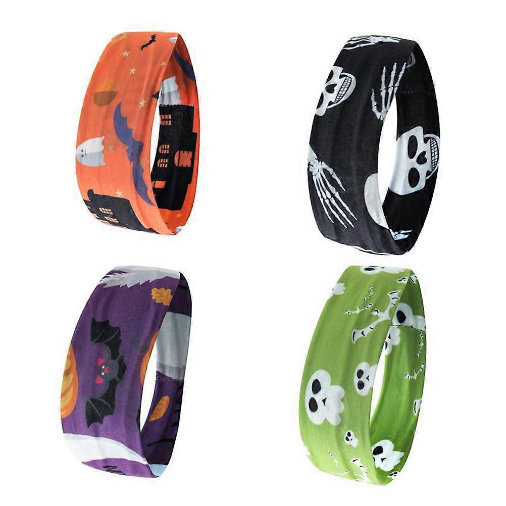 Halloween Headwrap Skull Ghost Pattern Sweat Absorption Headband for Girl 4Pcs