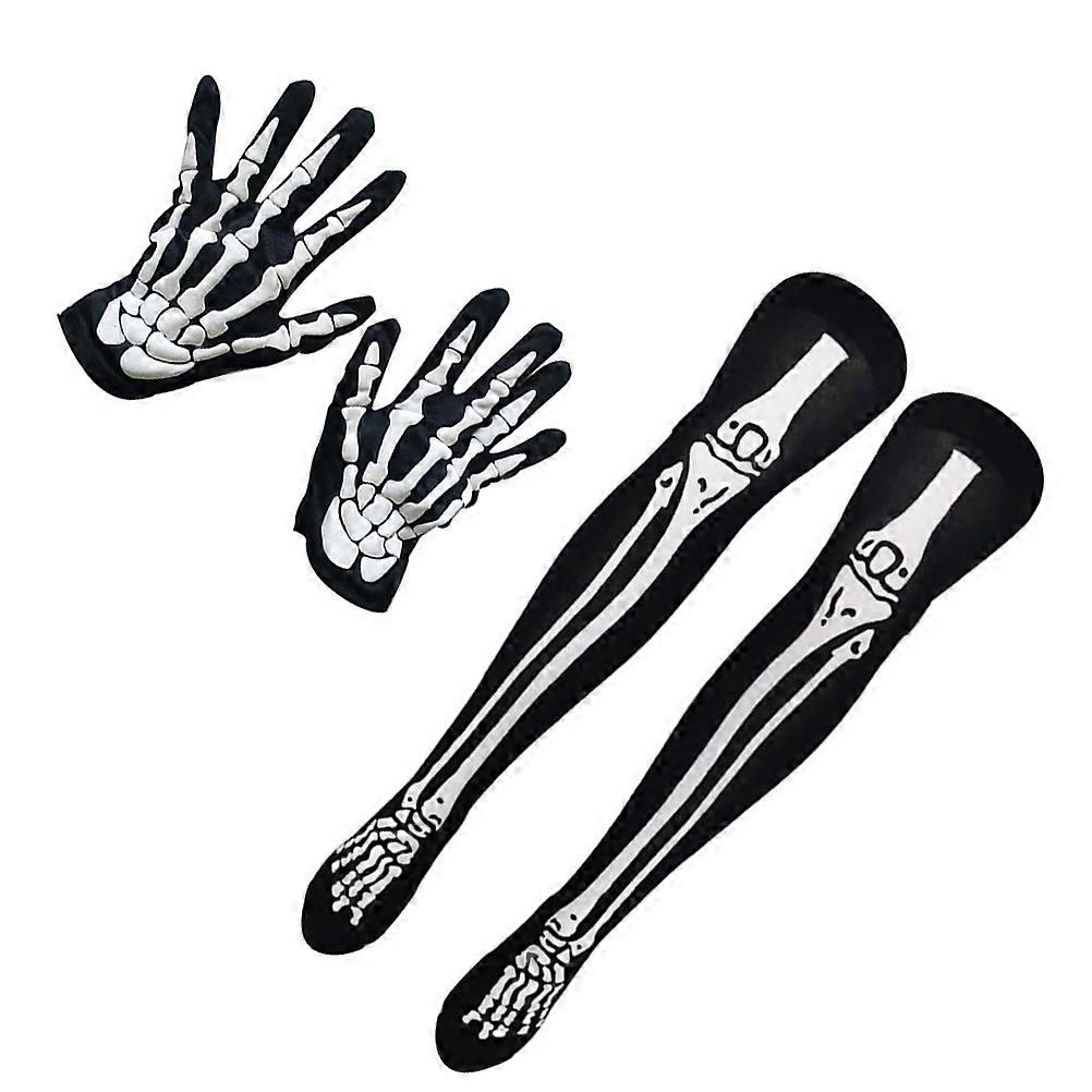 Halloween Cosplay Gloves Socks Set Bone Printing Leg Stockings for Women Custom Party 2 Pairs