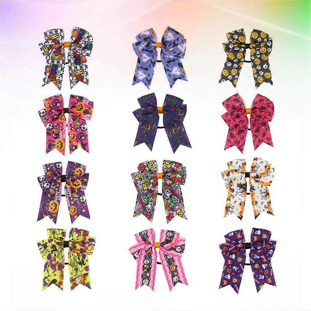 Halloween Hair Band Bowknot Elastic Hair Accessory for Women Girls Party Festival Assorted Color 12Pcs