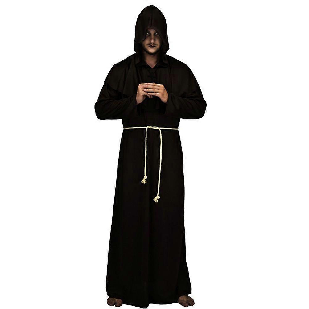Halloween Medieval Monks Costume Classic Friar Wizard Cosplay Costume Set Size XXL (Black)