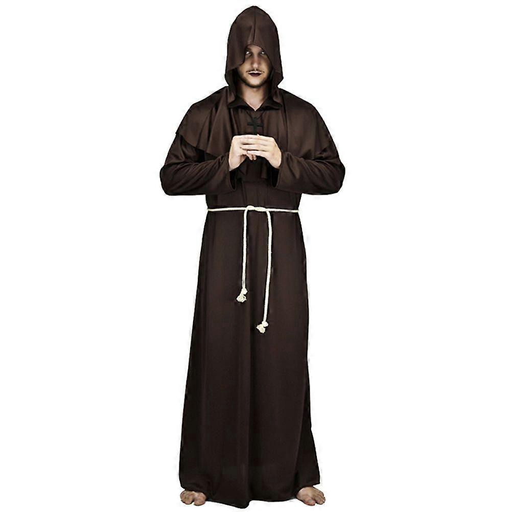 Halloween Medieval Monks Costume Classic Friar Wizard Cosplay Costume Set Size XL (Coffee)