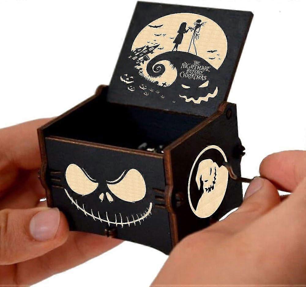 Halloween Tune Wood Music Box Toy The Nightmare Before Christmas Hand Crank Engraved Vintage Wooden Musical Box Toy