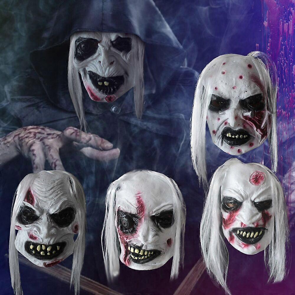 Halloween Cosplay Mask Ghost White Hair Wrinkle Horror Nights Decorations Props
