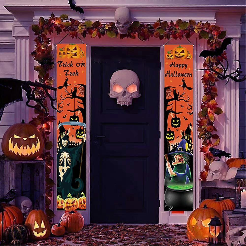 Halloween Spooky Banner Couplet Door Curtain Hanging Flag Carnival Party Supplies Home Outdoor Patio Creepy Decoration