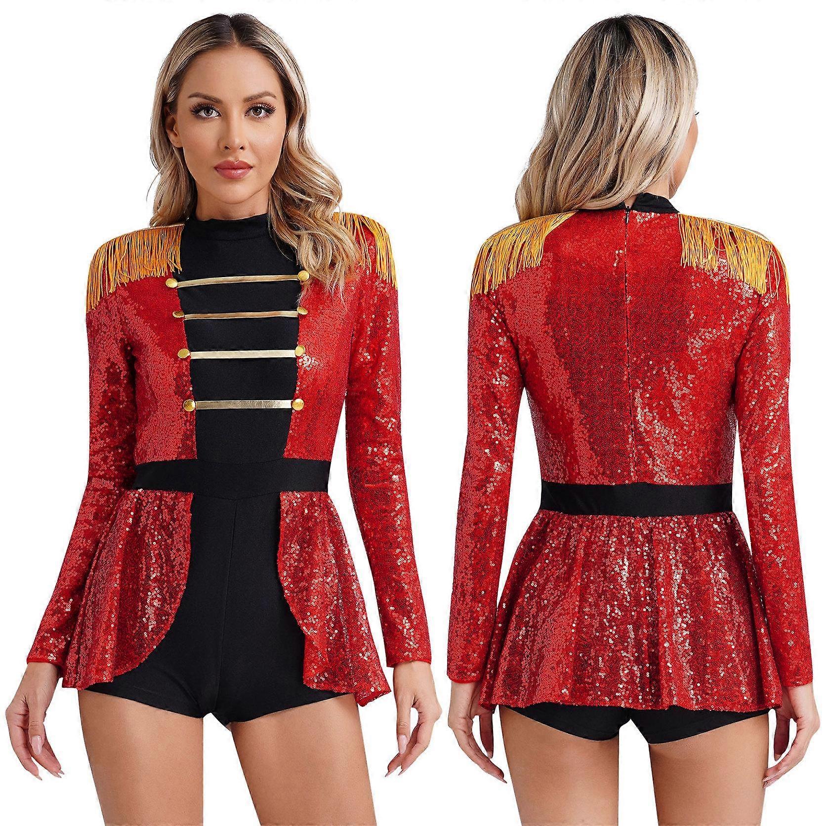Halloween Carnival Theme Party Circus Ringmaster Costume Cosplay Jumpsuit Role Play Long Sleeve Velvet Fringed Bodysuit