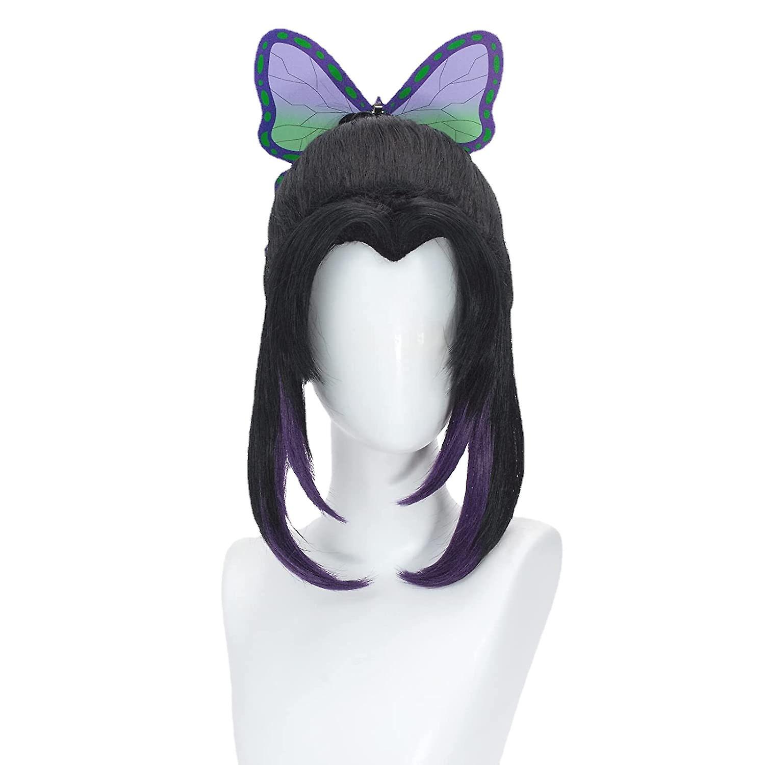 Halloween Wig Demon Slayer Kochou Shinobu Cosplay Wig Anime Costumes Black Purple Gradient Hair Christmas Carnival Party Roleplay Wigs + Cap