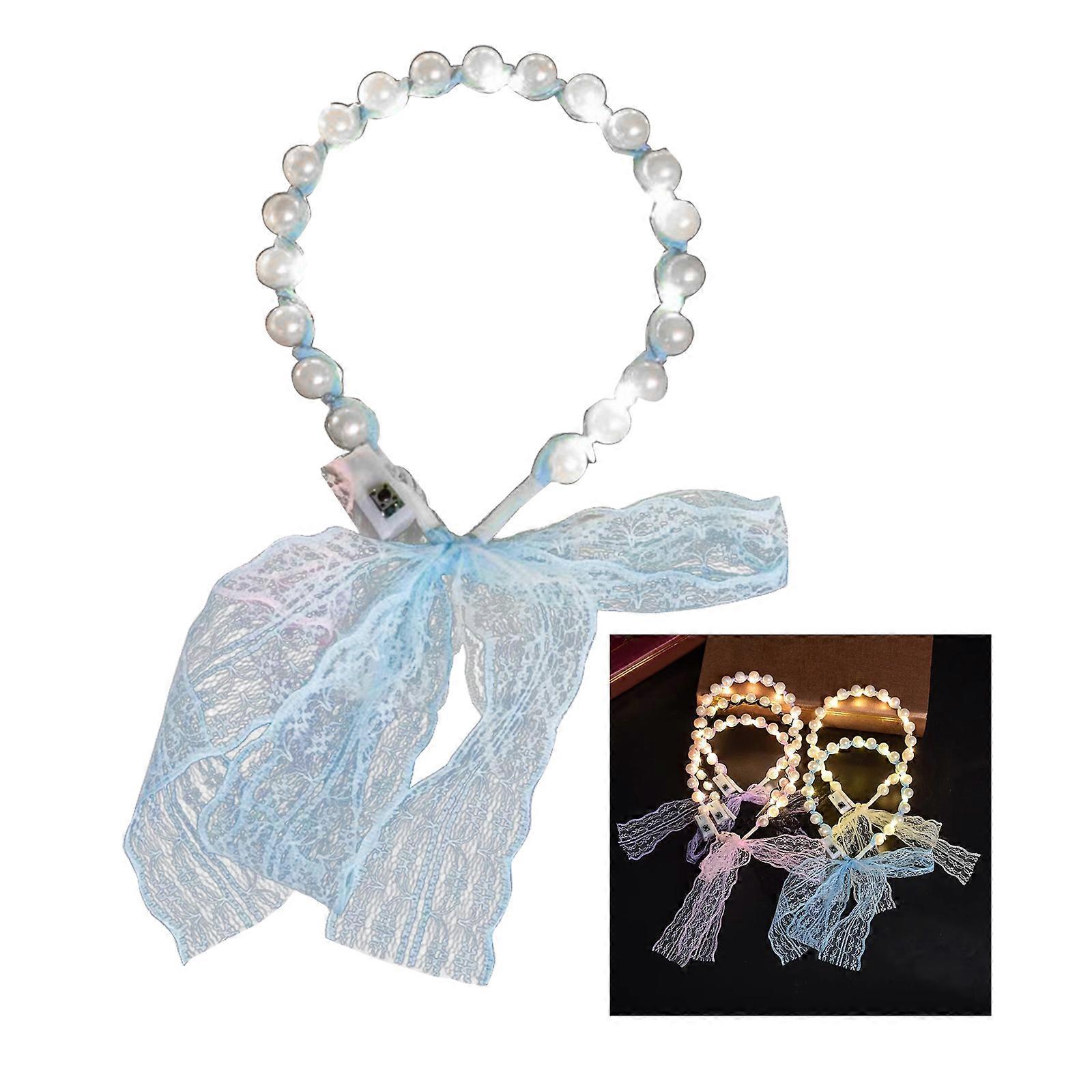 Halloween Pearl Beads Headband Concerts Hair Hoop Luminous Headbands for Adult Carnivals Party Photography Supplies warm light