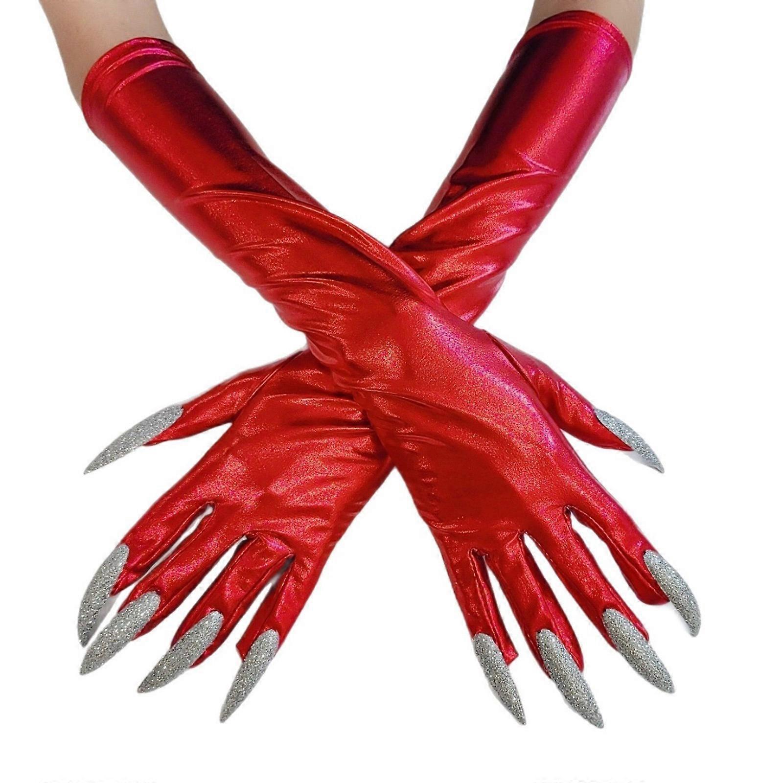 Halloween Cosplay Dark Long Gloves Fingernails for Cosplay Devil Cosume for Halloween Cosplay and Party Props Red