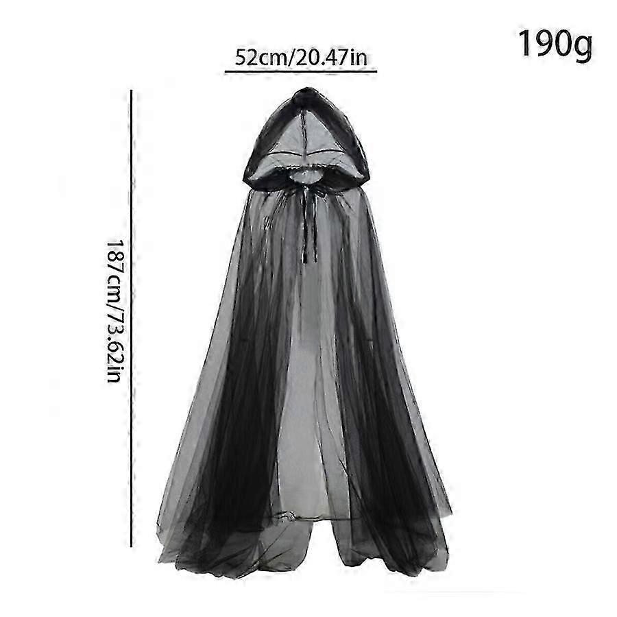 Halloween Cosplay Witch Cape Mesh Hooded Cloak Death Vampire Costume