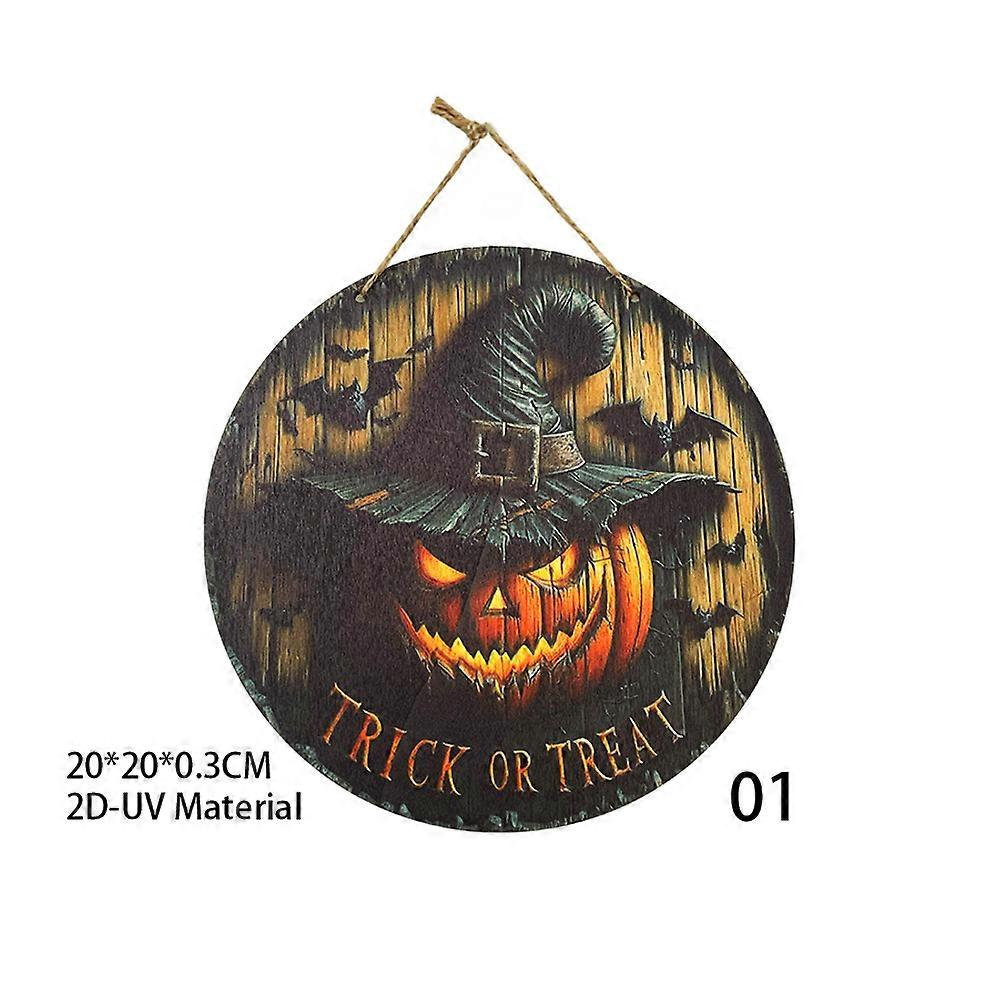 Halloween Decortions Wooden Wreath Retro Pumpkin Hanging Door Curtain Pumpkin Ghost Home Horror Party Decoration Supplies
