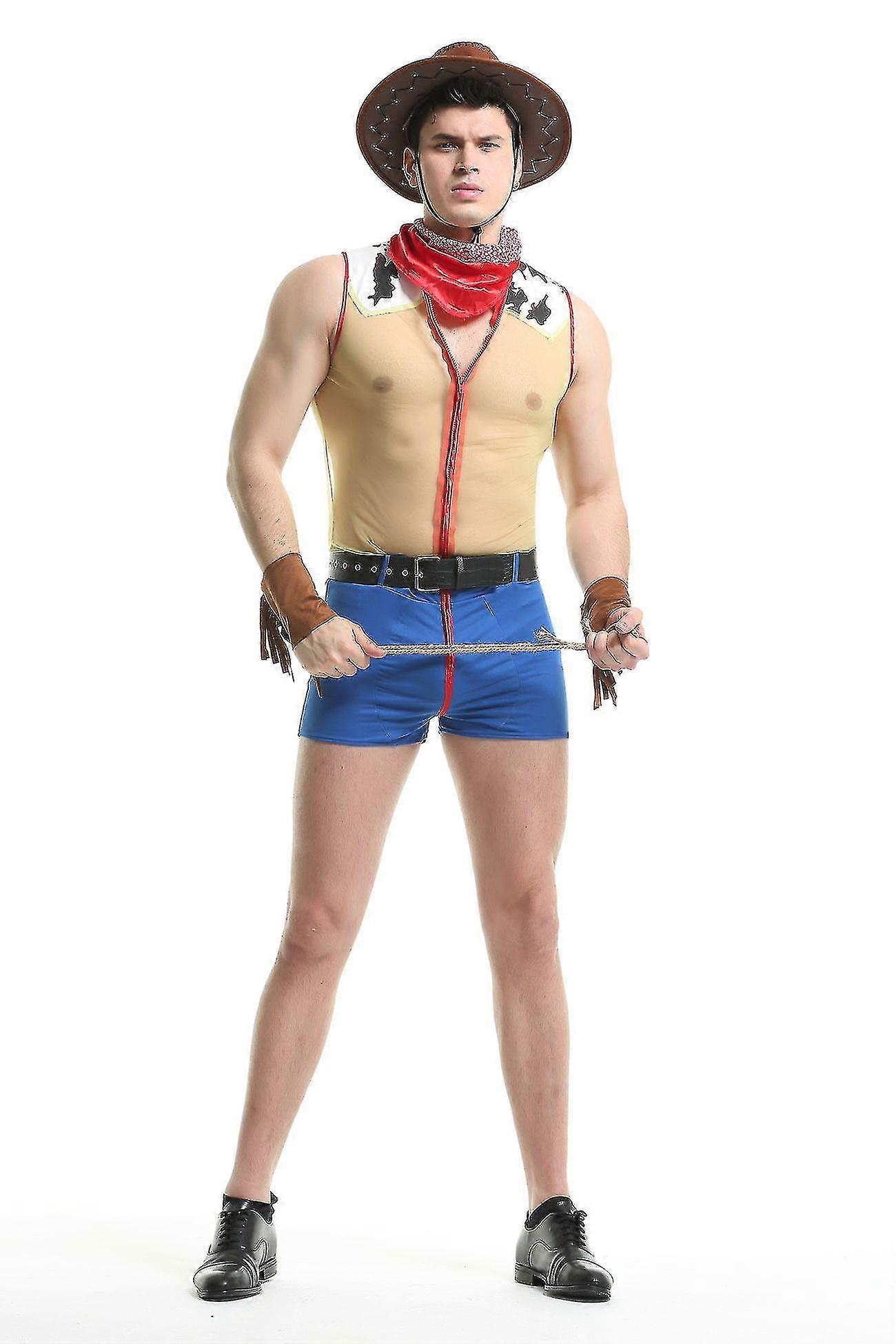 Halloween Carnival Party Sexy Men Western Cowboy Costume Stage Performance Woody Cosplay Fancy Dress-r