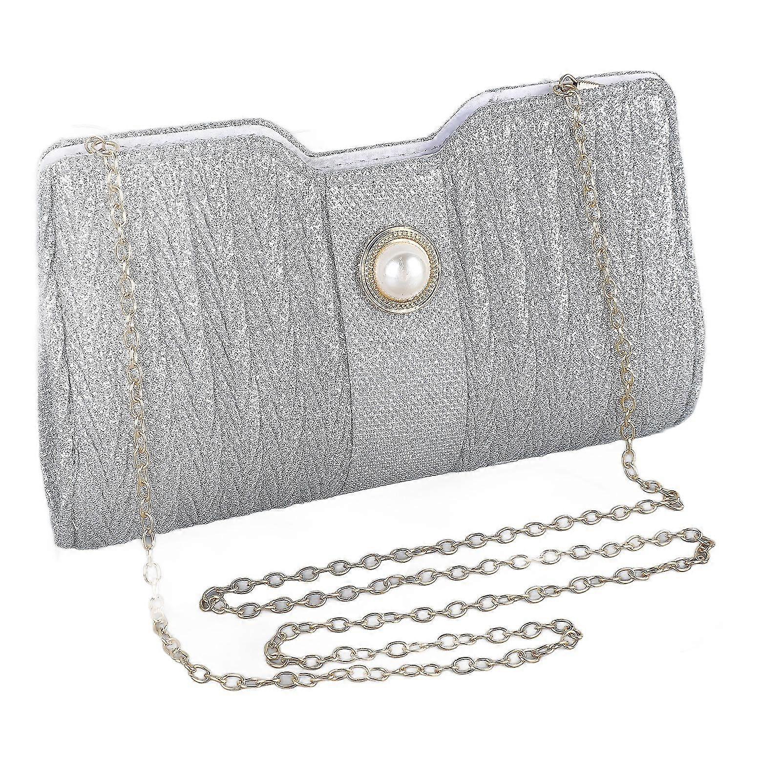 for Women with Shiny Rhinestones Faux Pearl Decor Elegant Handbag for Weddings and Parties