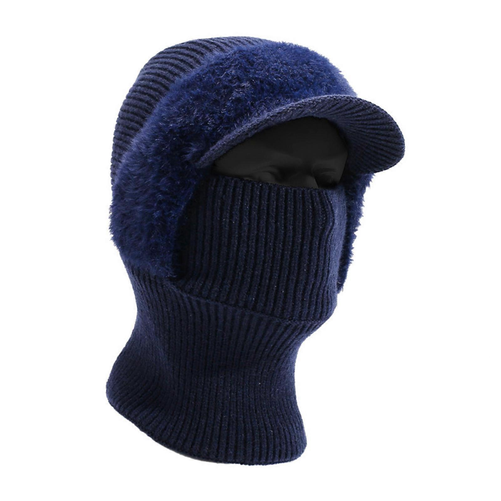 Thicken Knit Ushanka Neck Gaiter Furry Lining Thicken Neck Warmer Knit Scarf for Cold Weather Insulated Hat Navy Blue