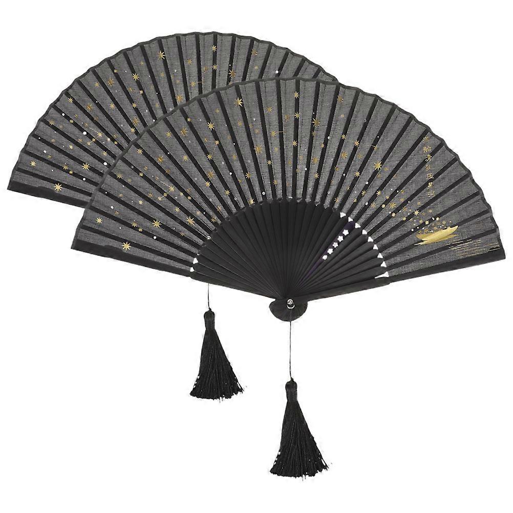 Asian Fans Handheld Bamboo Silk Folding Retro Style Home Decor Party 2Pcs 38 00X21 00X2 50Cm