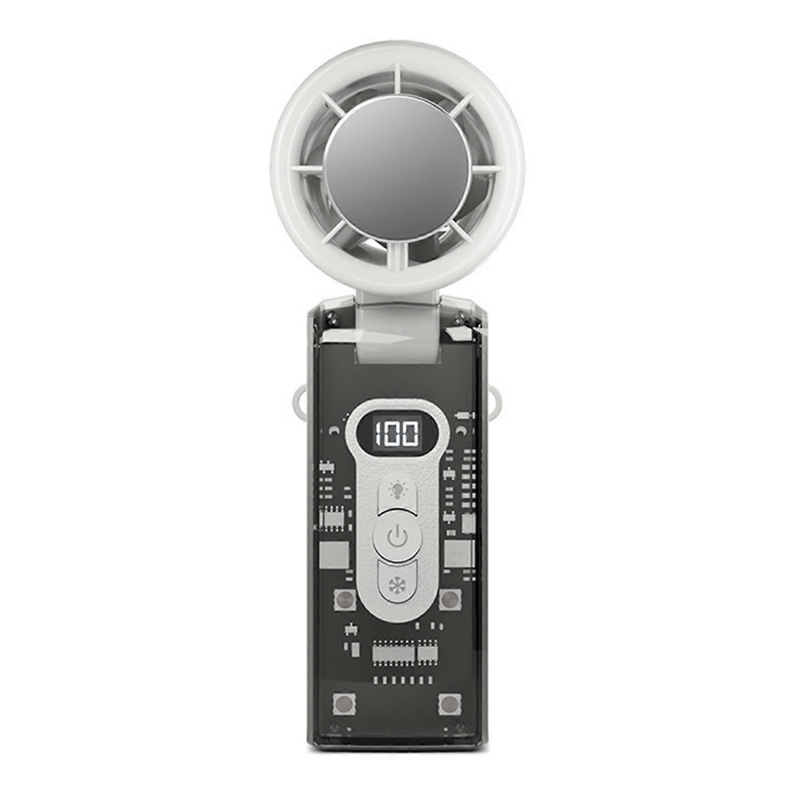 Augmenter Strong Air Handheld Fan With LED Power Measure 3600mAh Battery Fast Charging Dense For Travel Camping Transparent white