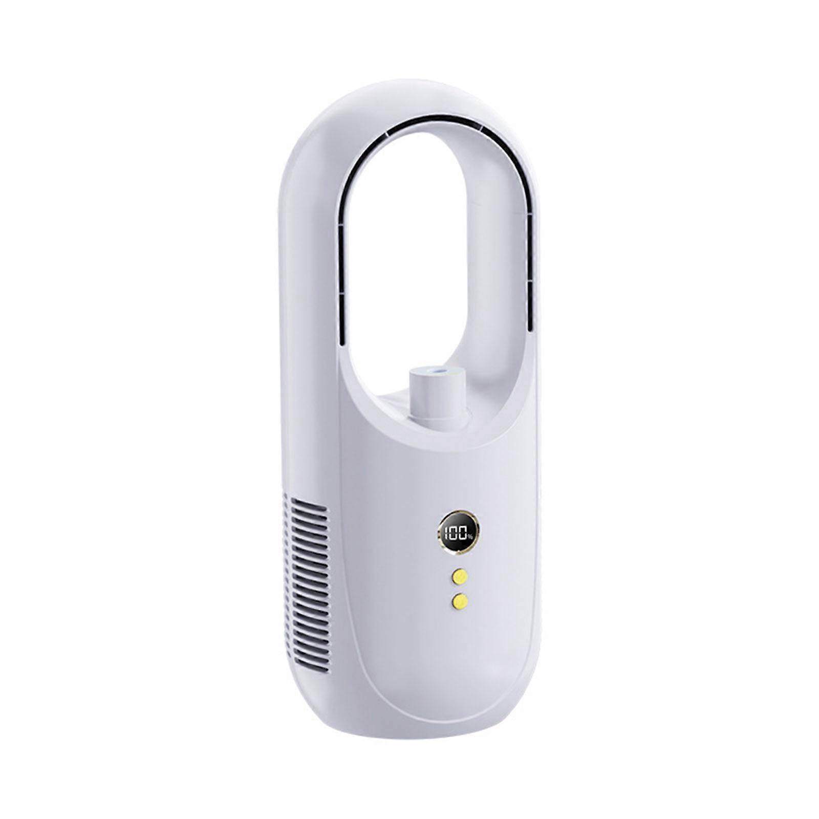 Bladeless Fan LED Display Desktop Leafless Fan Small Cooling Fan Quiet Fan USB Fan Plastic Office Fan for Office Bedroom White