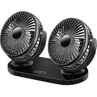 מאוורר לרכב, מאוורר USB שקט, מאוורר ראש כפול 12V, מאוורר מיני, סיבוב 360 עם 3 מהירויות