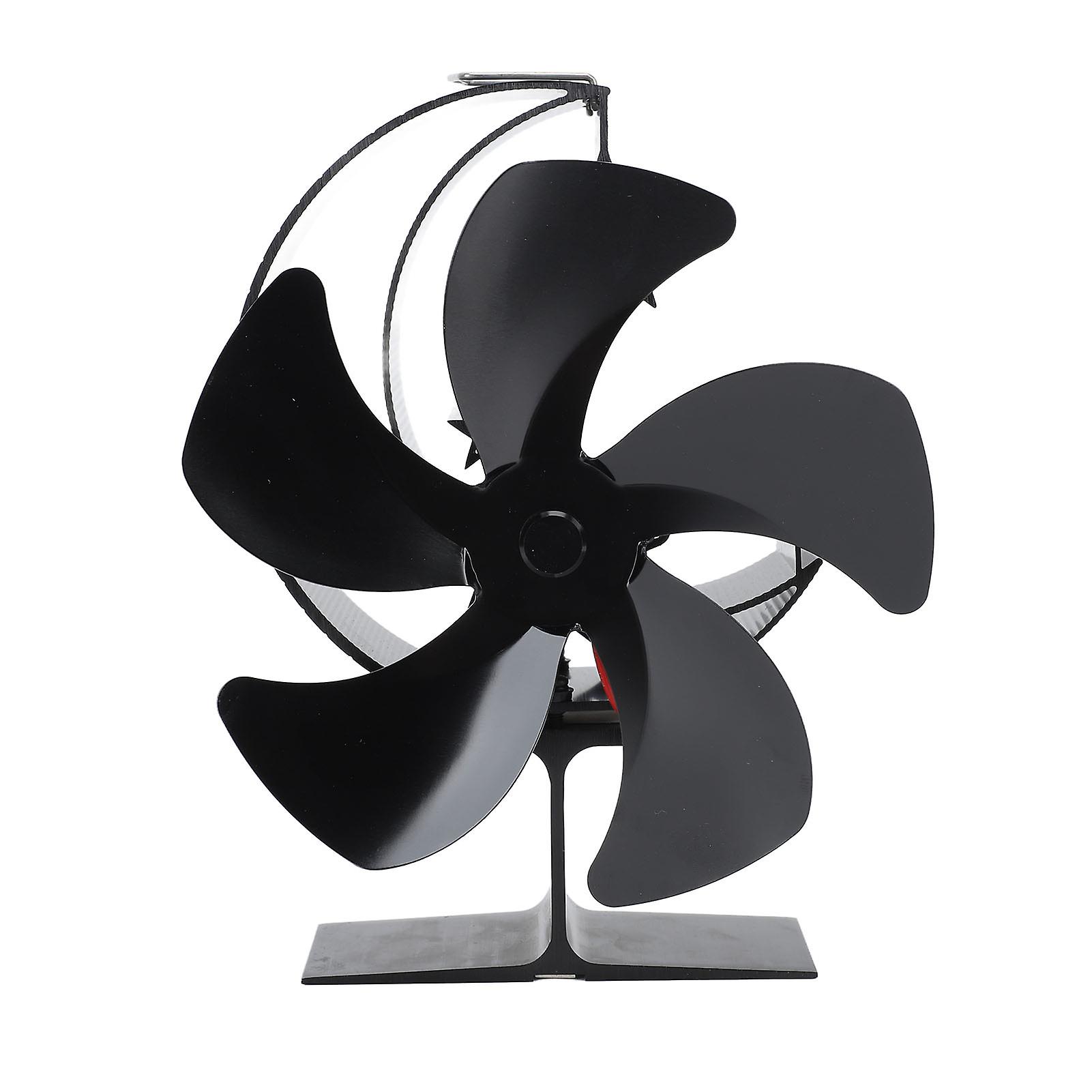 Wood Burner Fan 5 Blades Ultra Quiet Air Circulation Heating Energy Saving Heat Powered Fireplace Fan for Ice Fishing Camping Black