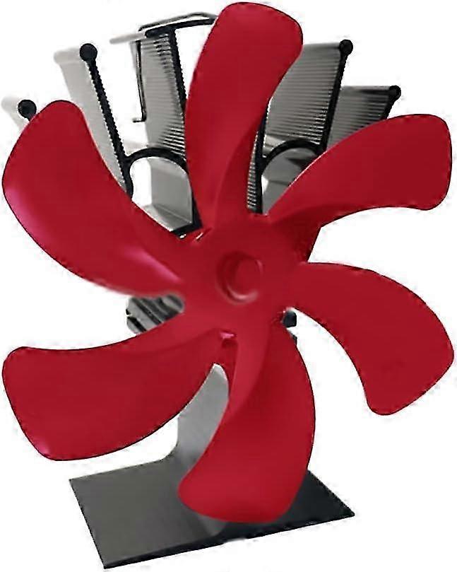 This is a fan that uses thermal energy to generate electricity as energy to circulate the hot air generated by the wood burning fireplace. There is a thermoelectric module on the fan, which acts as a small generator to drive the motor of the fan. The current is generated when the generator module experiences the thermal difference between the top and bottom surfaces. The bottom of the fan heats the bottom surface of the module, while the top of the module is kept cool by the top heat sink of the fan. As long as it is placed on the burning stove, it will absorb heat energy to drive the fan to rotate, so as to directly blow the hot air above the wood burning fireplace to the living area, increase the air circulation in the room, and improve the heating efficiency of the stove The rotation speed of the fan depends on the temperature of the wood burning furnace. The higher the temperature of the furnace, the faster the rotation speed. When the furnace temperature is low enough to extinguish the fire, the rotation speed will slow down until it stops. No assembly required, just place this small stove fan on a smooth flat surface of your stovetop, the fan will automatically rotate with the temperature getting higher. The hotter the stovetop is, the faster the stove fan spins and the more warm air the eco fan circulates. Material: alumina Color:Red Air volume: 180-210 Blade: 6 Wind speed: 800-1100rpm