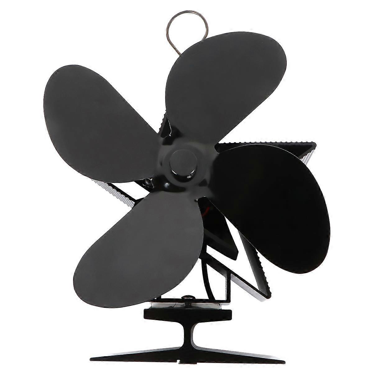 Fireplace Heat Powered Fan Eco-friendly Power Saving Warm Air Fan Stove Overheat Protect (Black)
