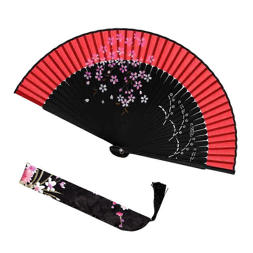 Foldable Fan Cherry Blossom Hand Fan for Performance with Cloth Bag