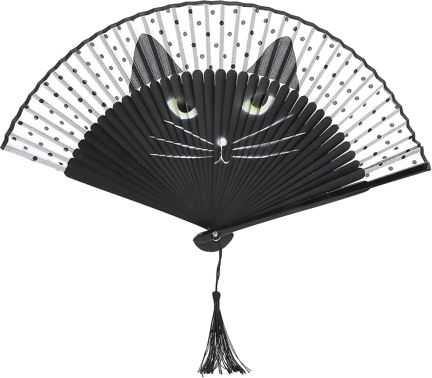 Lovely Black Cat Folding Fan, Hand Fan For Women, Hand Folding Fans, Dance Fan, Gifts For Wedding, Church, Party, Wall Decoration
